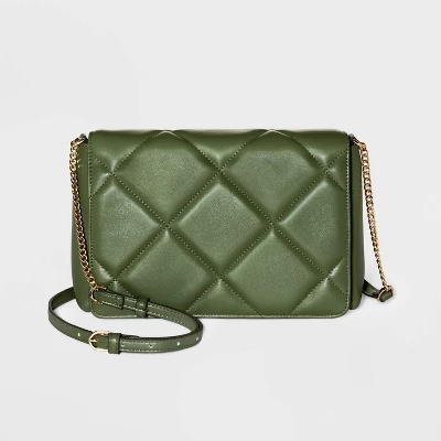 Bring classic style to your day with this Square Woven Crossbody Bag from A New Day™. This crossbody bag features a main compartment with an interior zip pocket secured by a magnetic closure for storing your daily essentials like your phone, IDs, credit cards, keys and small makeup accessories. The solid-color structured bag has a faux-leather quilted surface to elevate your everyday style. The bag boasts a classic rectangular silhouette with an adjustable faux-leather shoulder strap, which is bordered with gold-tone chain link embellishments on each end for added flair and convenient carrying over your shoulder or across your body.