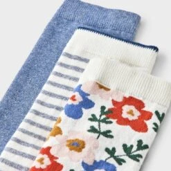 Women’s Floral 3pk Crew Socks – A New Day™ Ivory/Blue/Gray 4-10: Tagless, Smooth Toe Seams