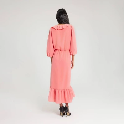 This style features ruffles and front tie elements for a feminine touch, with hem ruffles adding dimension. The elastic waistband and cuffs offer flexibility and comfort. Crafted from high-stretch chiffon in solid hues, it provides an ethereal feel and versatility.