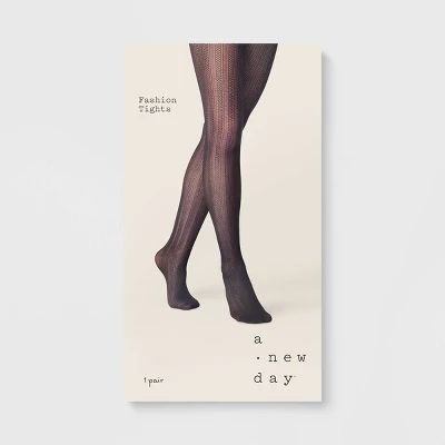 Unleash bold style wearing the Women’s Vertical Striped Openwork Pointelle Tights from A New Day™ in Black. Designed with a striking vertical stripes with openwork, these tights blend fashion-forward edge with classic elegance. Made from soft, stretchy knit fabric, they offer a semi-opaque finish for a lightweight, barely-there feel. The high-waisted design provides a flattering fit and smooth silhouette, while the closed toe makes them perfect for pairing with heels, boots or flats.